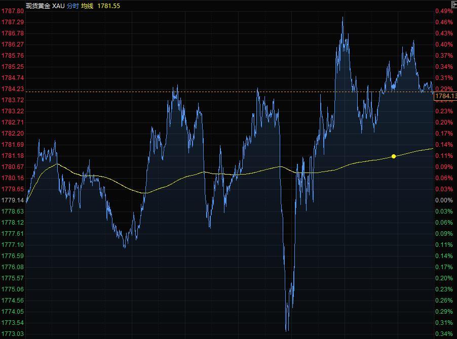 金价周二小幅走高,现货黄金尾盘涨0.3%,报1784.13美元/盎司;投资者注意力转向将于本周公布的美国通胀数据,这可能会影响美联储加息的步伐;