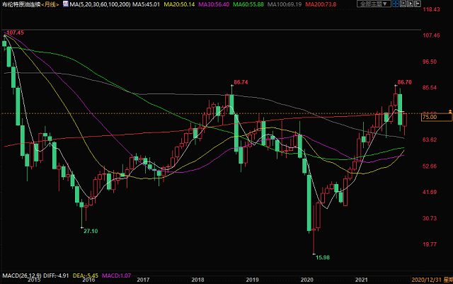 北京时间12月7日19:43,布伦特原油期货价格报75美元/桶。