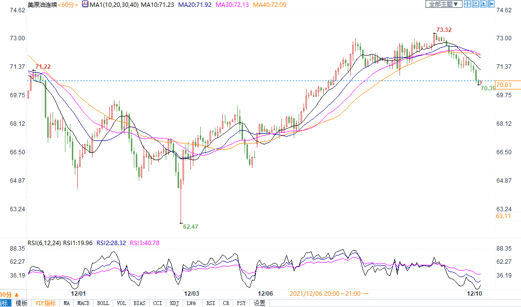 周四(12月9日)布油尾盘下跌2.39%,报收74.01美元/桶,稍早曾高见76.70美元。最近数据显示Omicron在早期阶段的传染性是德尔塔的4.2倍,新变种病毒或使更多国家实施新的限制措施,从而冲击原油需求。