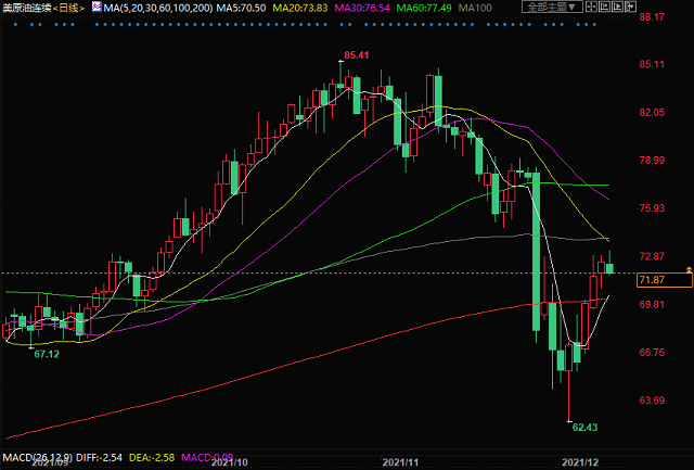 北京时间12月9日20:20,美原油期货价格报71.87美元/桶。
