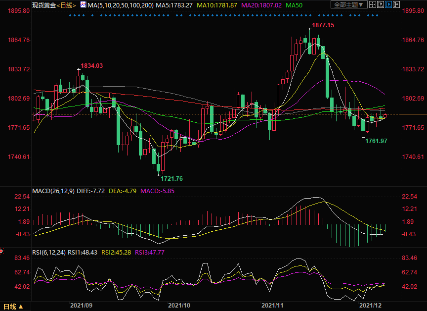 周四(12月9日)现货黄金小幅上涨,投资者目前仍然等待CPI数据的出炉,在此之前波动料有限,建议暂时以观望为主。