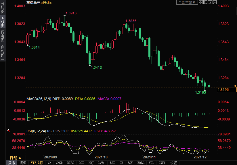 周五(12月10日)英镑兑美元在欧洲时段跌破了1.32关口,英国宏观数据疲软以及美元的走强令汇价重启跌势。