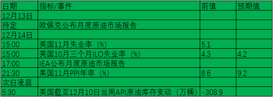 12月13日-19日当周,一系列重要数据及决议将陆续出炉。数据方面,投资者需重点关注美国PPI、零售销售、EIA、初请、制造业PMI及中国的一些主要经济数据,另外,英国、澳洲和欧元区方面也有一些主要的经济数据出炉。事件方面,全球主要发达国家央行将集体公布利率决议,包括美联储、英国央行、欧洲央行、日本央行等。下周将注定是个大行情周,投资者需密切关注重要数据及各大央行决议的结果。