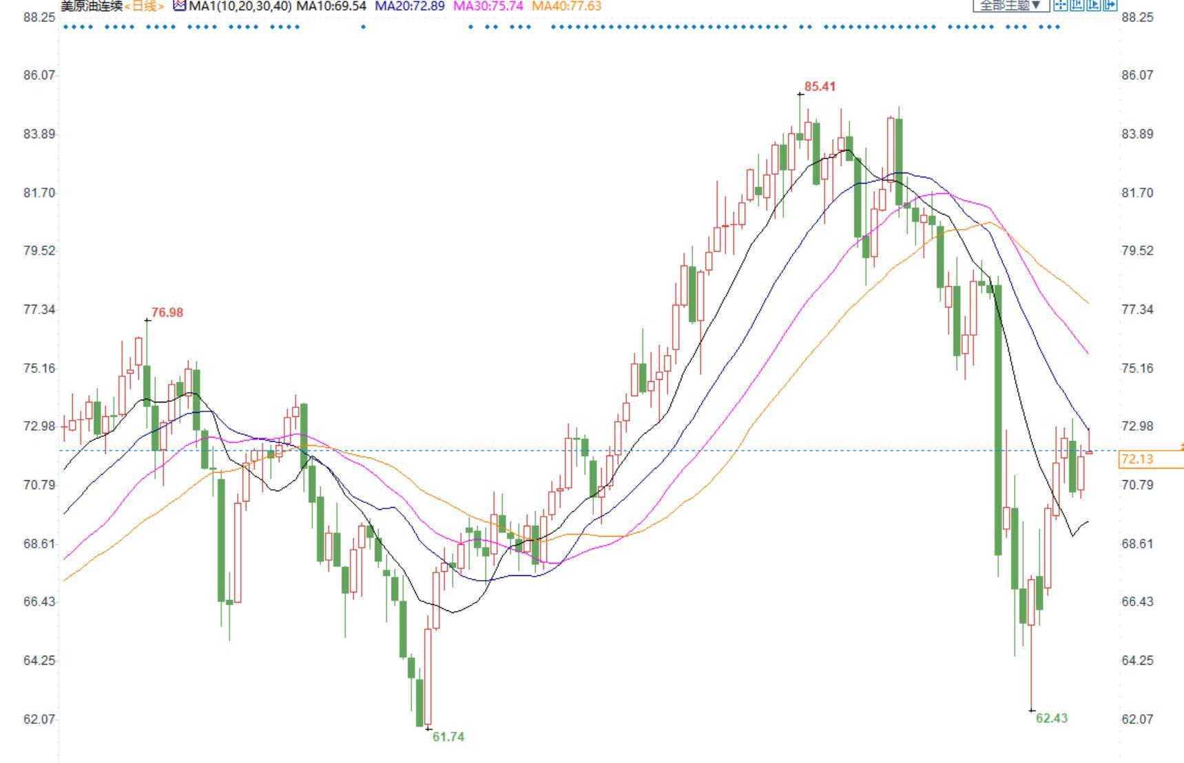 美国原油价格小时图