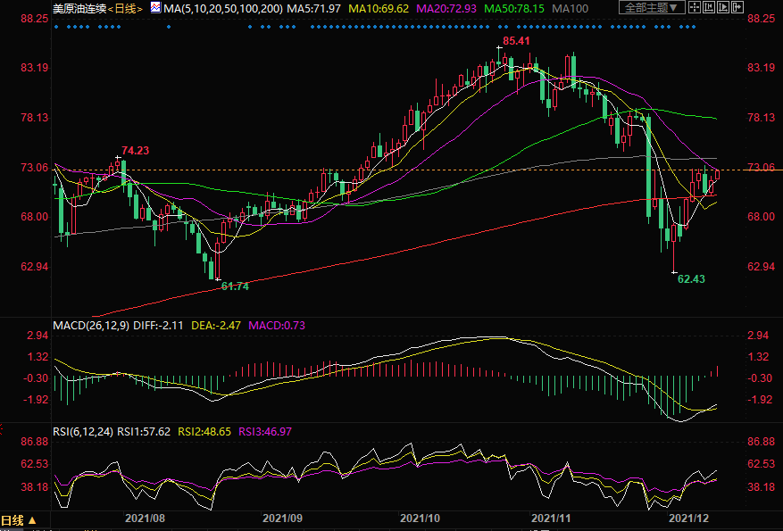 技术面来看有利于多头,MACD低位金叉,RSI金叉,油价可能有进一步上涨的机会。