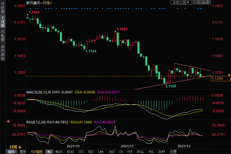 周三(12月15日)欧元兑美元在美联储政策声明发布前窄幅震荡,日内大部分时间在1.1250-1.1275区间内交投。