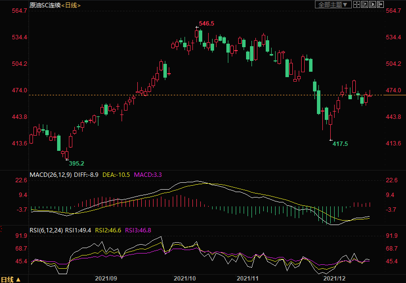 周五(12月17日)上海原油价格上涨1.23%,主力合约2202终盘收于469.2元/桶,涨5.7元/桶,美国隐性石油需求创纪录、原油库存下降和美联储乐观的经济预测,盖过了Omicron变种损害全球消费的担忧。