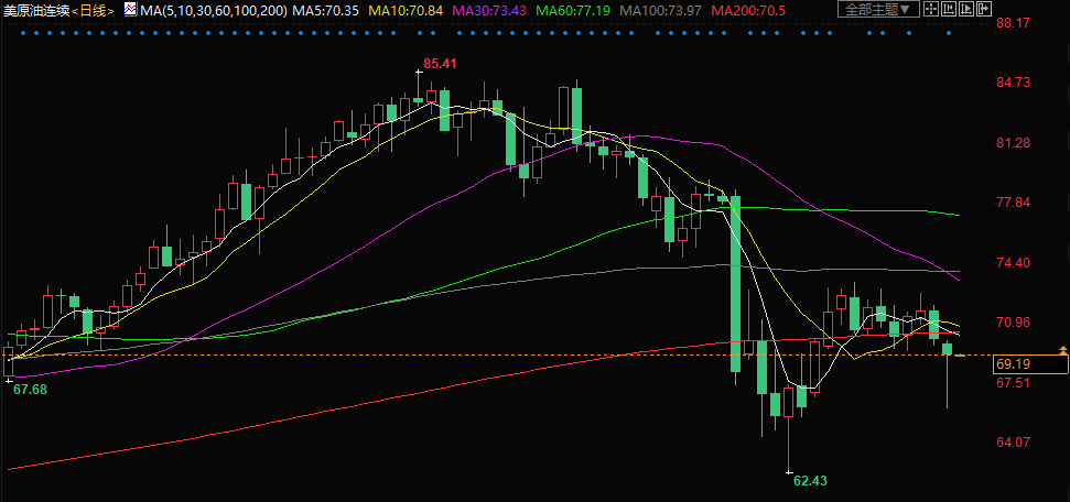 周二(12月21日)亚市盘初,美油现报69.18美元/桶;油价周一下跌超1.3%,创本月最大单日跌幅,欧洲和美国的奥密克戎毒株感染病例激增,引发了投资者对新限制措施可能会削弱燃料需求的担忧;拜登经济计划命运多舛的担忧也打击了市场人气,不过OPEC+减产执行率较高,令油价尾盘跌幅收窄。