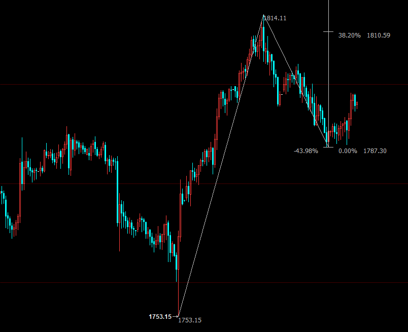小时图上看,金价自1787美元开启上行C浪走势,上方阻力看向38.2%目标位1811美元。日线图上看,金价延续自1752美元开启反弹(B)浪走势。C浪是(B)浪的子浪,(B)浪则是自1877美元开启的下行((Z))浪的子浪,((Z))浪则隶属于自2075美元开启的调整IV浪。