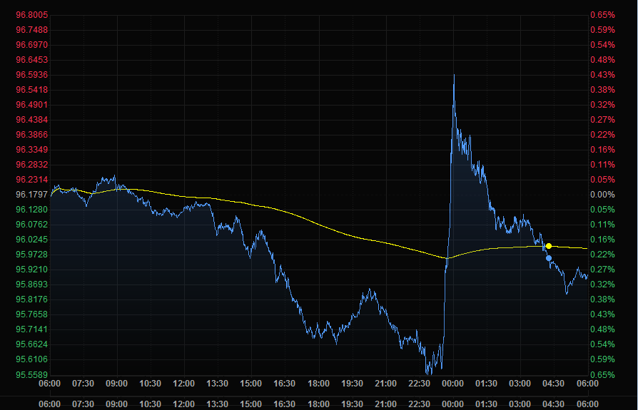 美元指数周三下跌0.37%,至96.10附近。