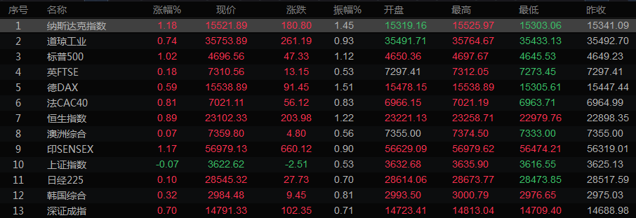 全球主要市场行情一览