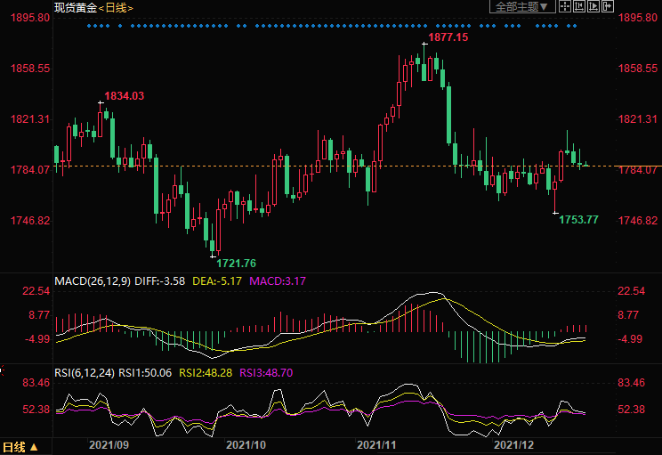 预计短线金价可能延续震荡下行的走势,一方面Omicron的担忧暂时降温,另一方面周四的通胀可能引发加息担忧。