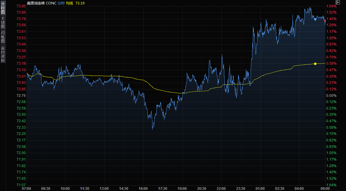 美国原油期货收盘上涨1.03美元,报每桶73.79美元,涨幅1.4%,本周上涨4.1%。周四交投淡静,根据路孚特Eikon数据,近月合约成交量仅为24.4万口,而过去200天的日均成交量为38.1万口。