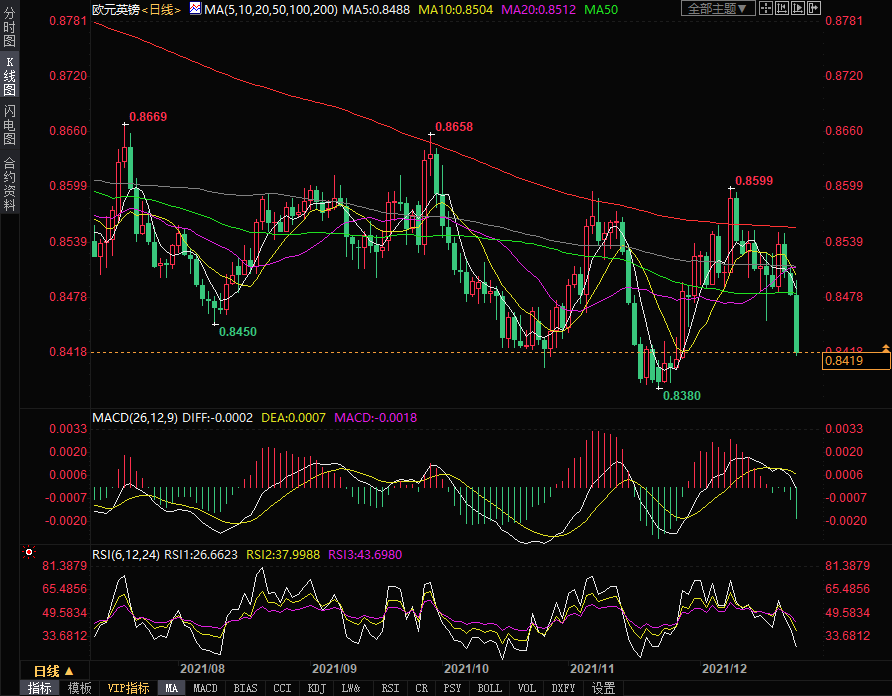 下方重要支撑关注11月22日低位0.8380,突破这一水平将创下近两年新低,对多头将是巨大的打击。