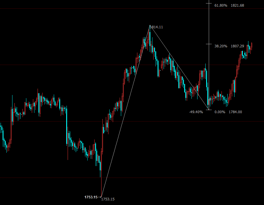 小时图上看,金价自1784美元开启上行C浪走势,升破38.2%目标位1807美元,上方目标看向61.8%目标位1822美元。日线上看,C浪是自1752美元开启的反弹(B)浪的子浪,(B)浪则是自1877美元开启的下行((Z))浪的子浪,((Z))浪则隶属于自2075美元开启的调整IV浪。