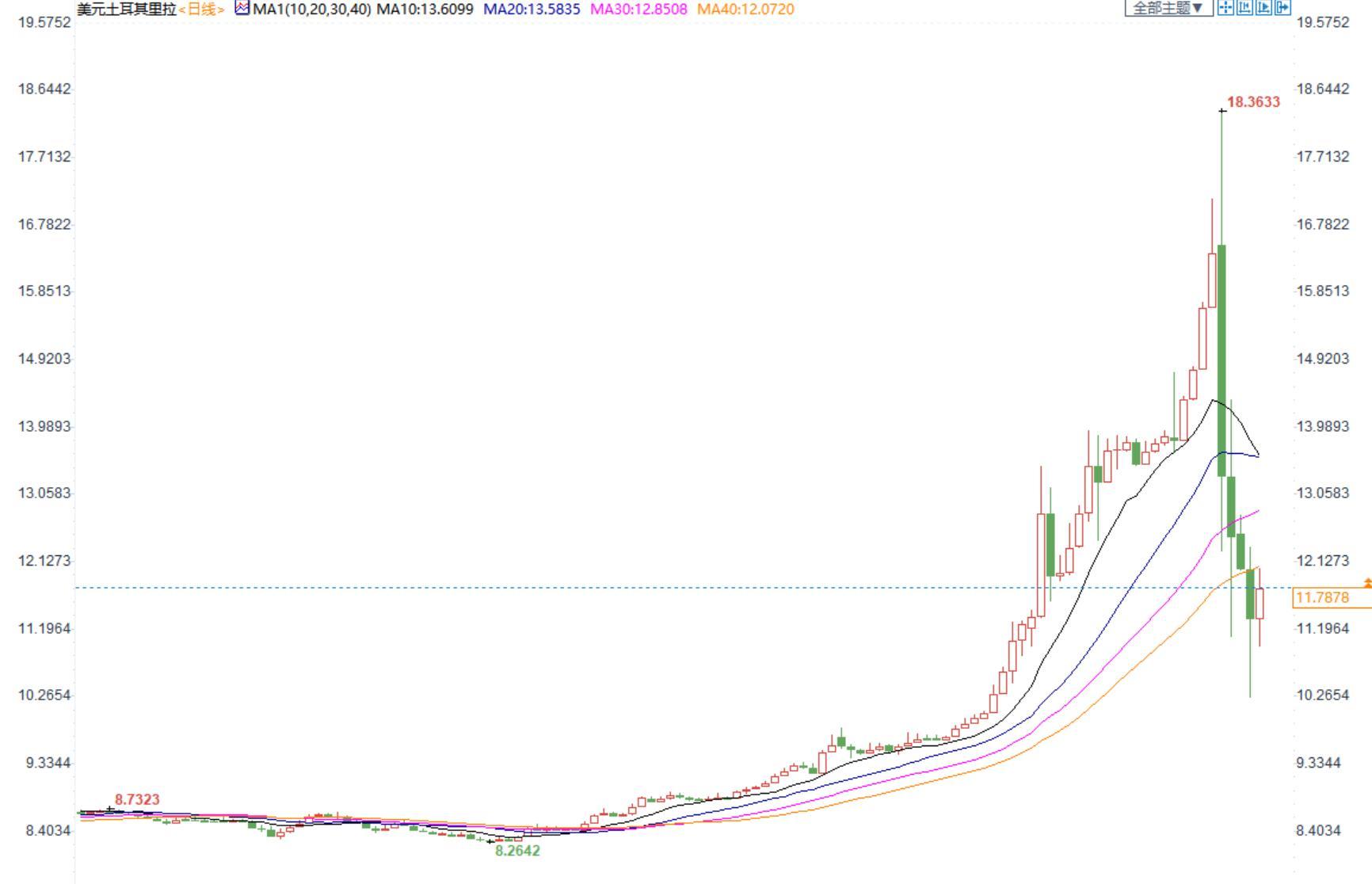 美元兑土耳其里拉本周暴跌30%,土耳其总统埃尔多安公布新的储蓄计划后,土耳其里拉大幅上涨