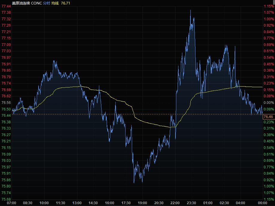 油价冲高回落,美油尾盘小幅收跌,盘中一度创近五周新高至77.44美元/桶;在11月份出现重挫之后,油价一个月来呈现涨势;11月末的下跌是因为市场担心omicron变异株将导致全球经济封锁。