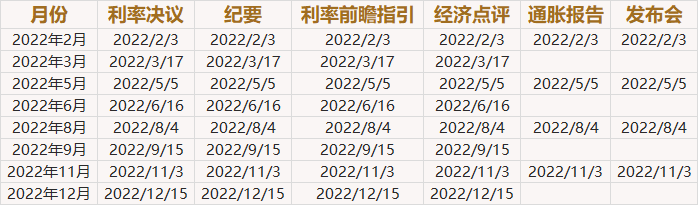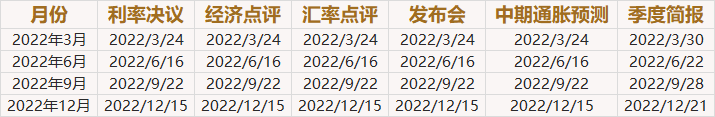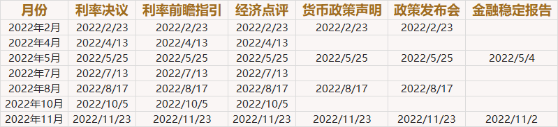 快收藏!2022年全球八大央行利率决议和纪要日程一览