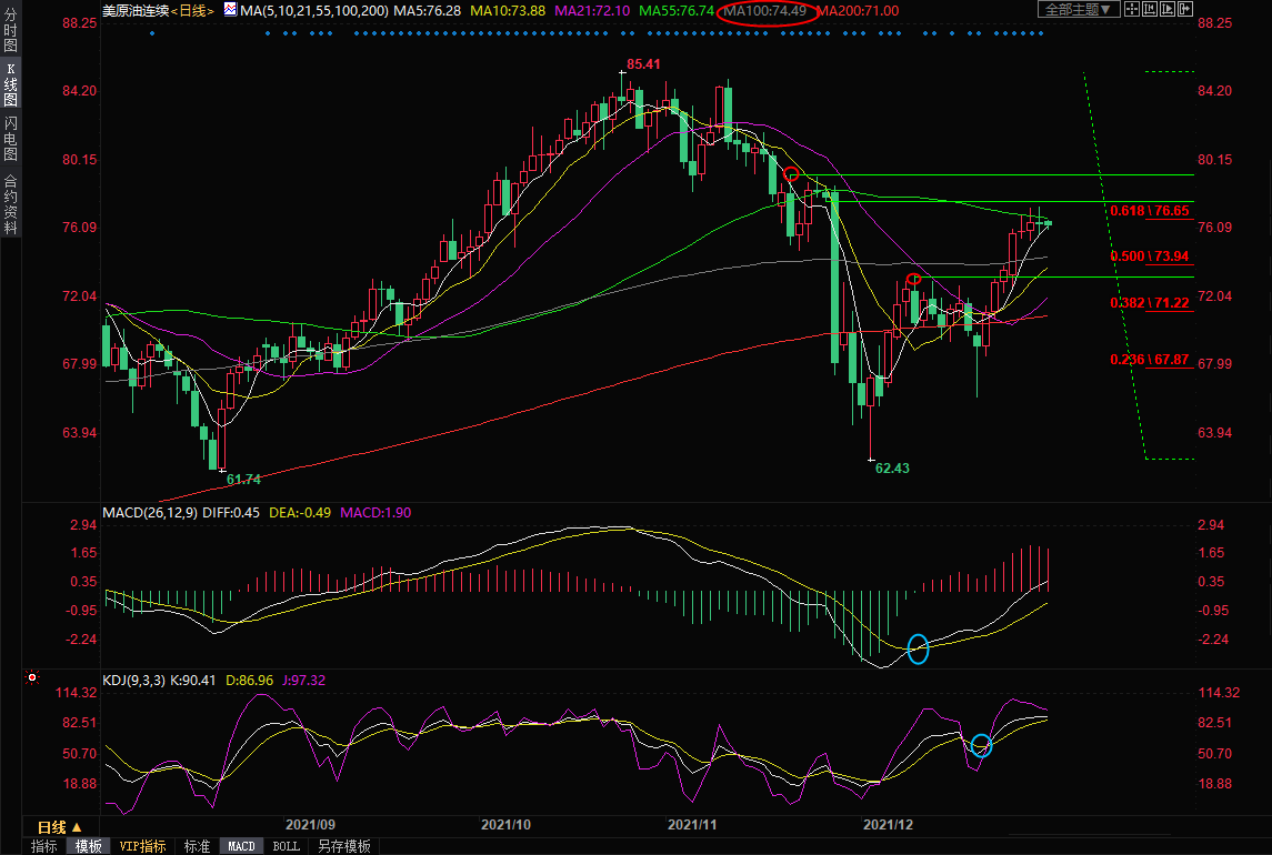 但油价目前正好受到55日均线和85.41-62.43跌势的61.8%回撤位76.65附近阻力压制,短线走势变数较大;上一交易日录得类似十字星K线,需要提防油价重回跌势的风险,初步支撑在12月29日低点75.36附近,100日均线支撑在74.49附近,较强的支撑在12月9日高点73.34附近,如果回落支撑该位置下方,则增加后市看空信号。