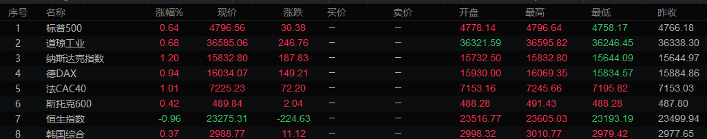 全球主要市场行情一览