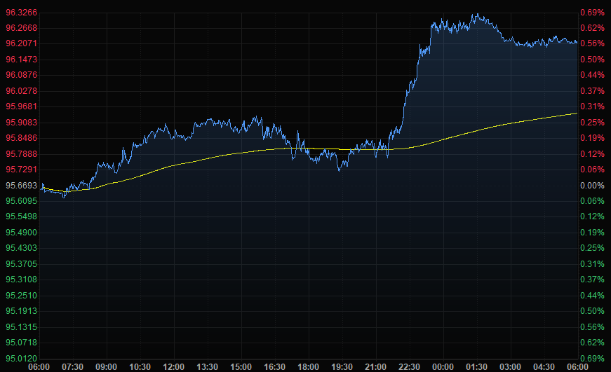 美元指数大涨0.57%,至96.21,与美国国债收益率同步,投资者预计美联储将在2022年加息,美元指数盘中一度上涨0.6%,为11月10日以来最大盘中涨幅。