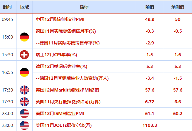 1月4日财经早餐:加息预期助美元录得近两个月最大涨幅,风险偏好回暖金价大跌近30美元