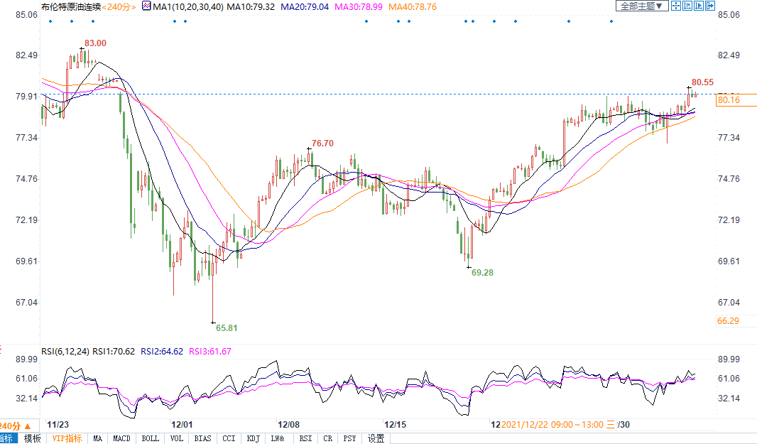 Oanda的美洲高级市场分析师Ed Moya说:“由于OPEC+显示出对全球原油需求前景只受到有限打击抱有信心,油价开始一路上涨。此外,俄乌紧张局势等地缘政治风险,漫长的伊朗核协议谈判也支持油价走高。除非风险偏好恶化或股市下跌,否则布伦特应该会在每桶80美元区间内停留一段时间,WTI可能会在77美元附近盘整”。