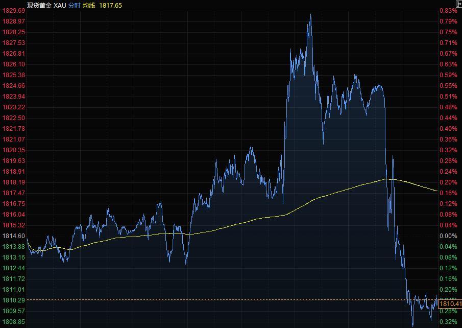 现货黄金周三下跌,收于1810美元附近,因美联储上次会议记录发布后,美债收益率急升,记录显示联储可能需要比预期更早加息,以抑制通胀。