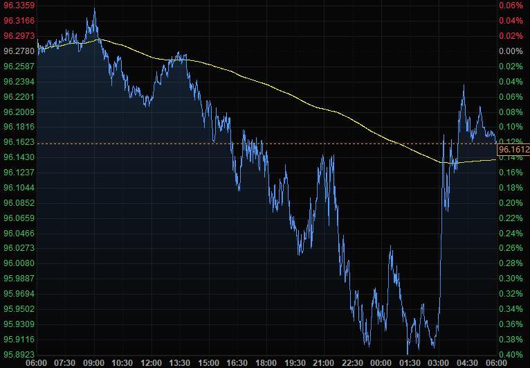 美元指数尾盘跌0.12%至96.16,在美联储12月会议纪要公布后,随着收益率走高,美元收窄跌幅。