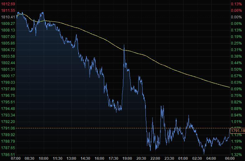 周四,现货黄金跌逾1%,刷新去年12月22日以来低点至1786.51美元/盎司,受累于美债收益率上扬,此前美联储暗示将加快加息;指标10年期美债收益率触及去年3月以来最高。
