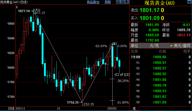 现货黄金下看1784美元
