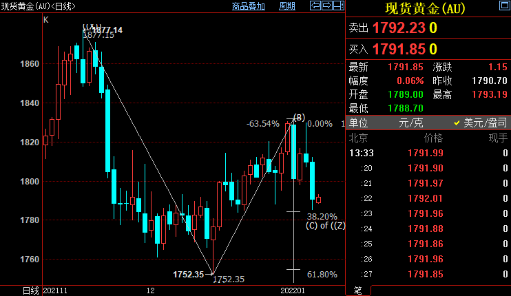 现货黄金下看1755美元