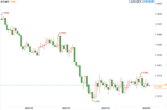 北京时间1月7日15:08,欧元兑美元报1.1300/02。