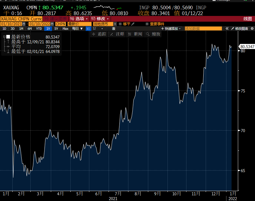 德国商业银行分析师DanielBriesemann指出,“2021年白银没有自己的行情,基本上跟随黄金波动。总的来说,与黄金相比,它跌的更多。因此,黄金/白银比率从年初的良好70攀升现在已经超过80。”