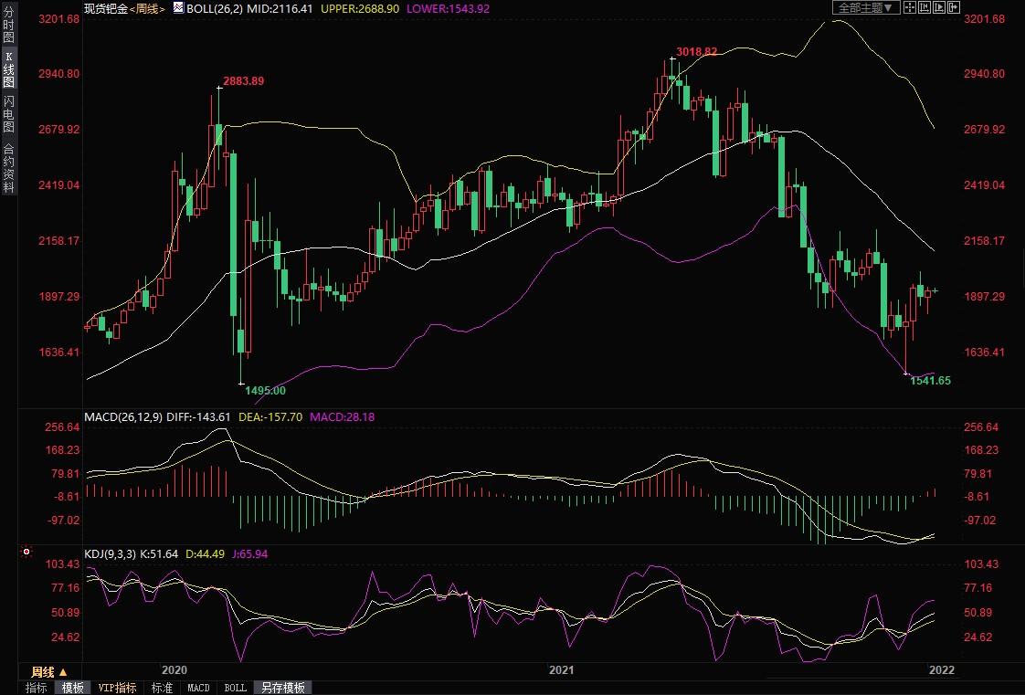 Metals Focus在最近的一份报告中表示:“在这种背景下,我们预计钯金的价格将从目前的低点逐步回升,特别是在2022年下半年,全年平均价格将达到2170美元。”
