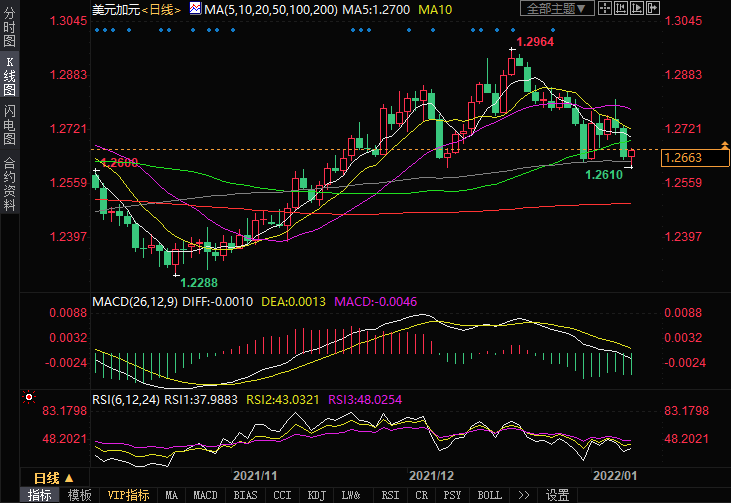 周一(1月10日)美元兑加元从欧洲中段触及的逾一个月低点反弹逾50个点,并跳涨至1.2665区域,因日内美元指数强势回归。