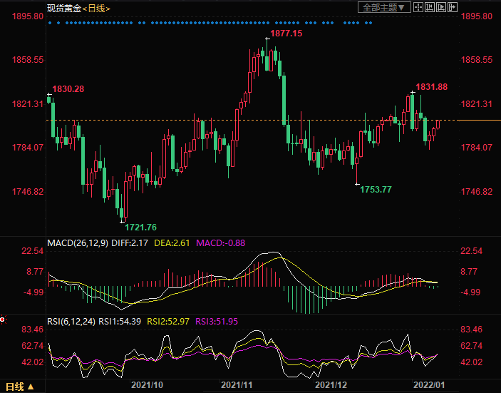 上方初步阻力关注11月26日高位1815.56,进一步关注12月28日高位1820.25以及1月3日高位1831.88。