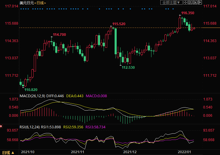 周三(1月12日)欧洲时段,美元兑日元窄幅震荡,并依然受限于115.50下方的窄幅区间内。