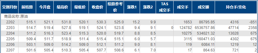 阻力位:INE原油527.8,美油85.41