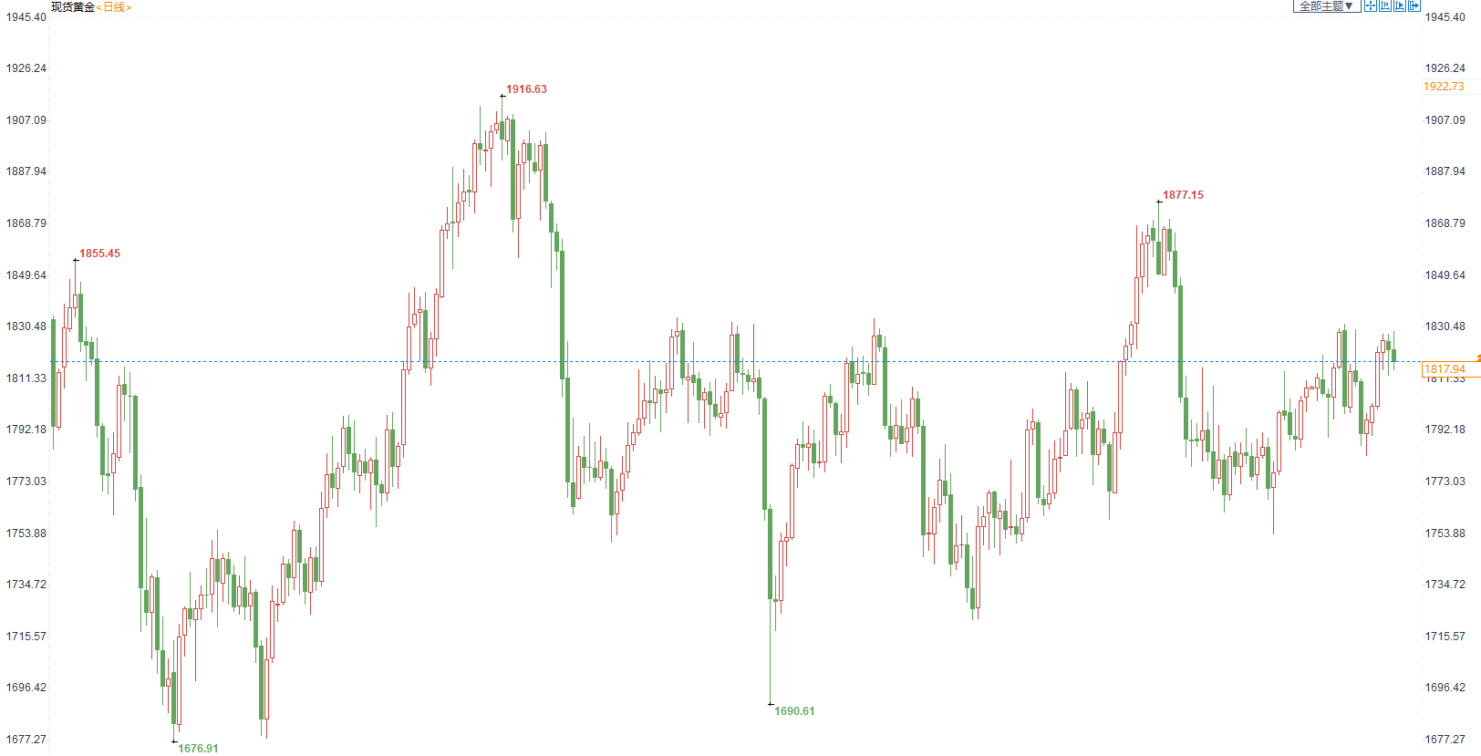 金市周评:美国通胀飙升经济前景蒙阴,金价本周站稳千八上方