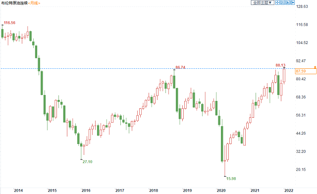 北京时间1月18日19:20,布伦特原油期货价格报87.59美元/桶。