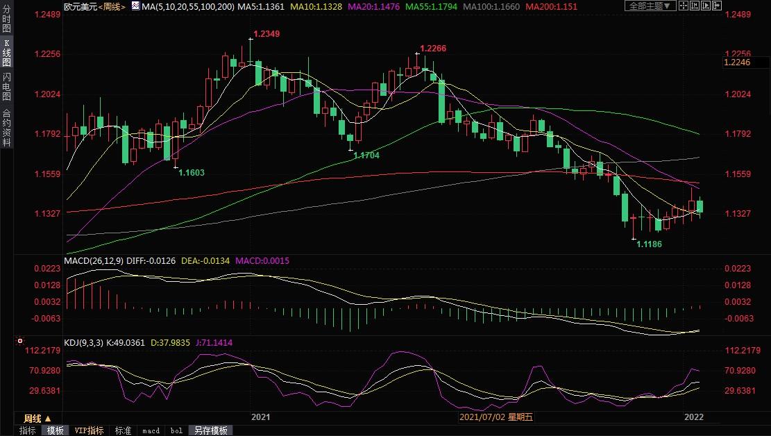 本周欧元兑美元表现不佳,收跌0.58%,中断了此前四周的涨势,收报1.1345,分析师认为,FOMC会议前欧元兑美元难以大幅反弹,受欧美政策差异压制,欧洲央行行长拉加德的鸽派言论和避险的美元走强对汇率构成拖累,欧洲央行和更加鹰派的美联储之间的差异继续压制欧元兑美元。