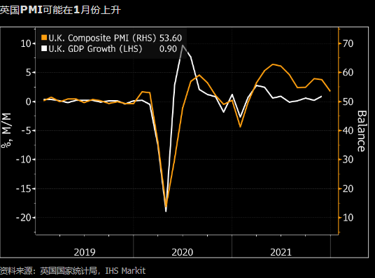 预计12月和1月英国国内生产总值将下降,因为消费者谨慎,限制措施和缺工影响了产出。这可能意味着一季度经济增速大幅下滑。