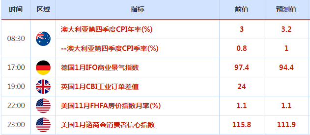 周二(1月25日)关键字:澳大利亚四季度CPI
