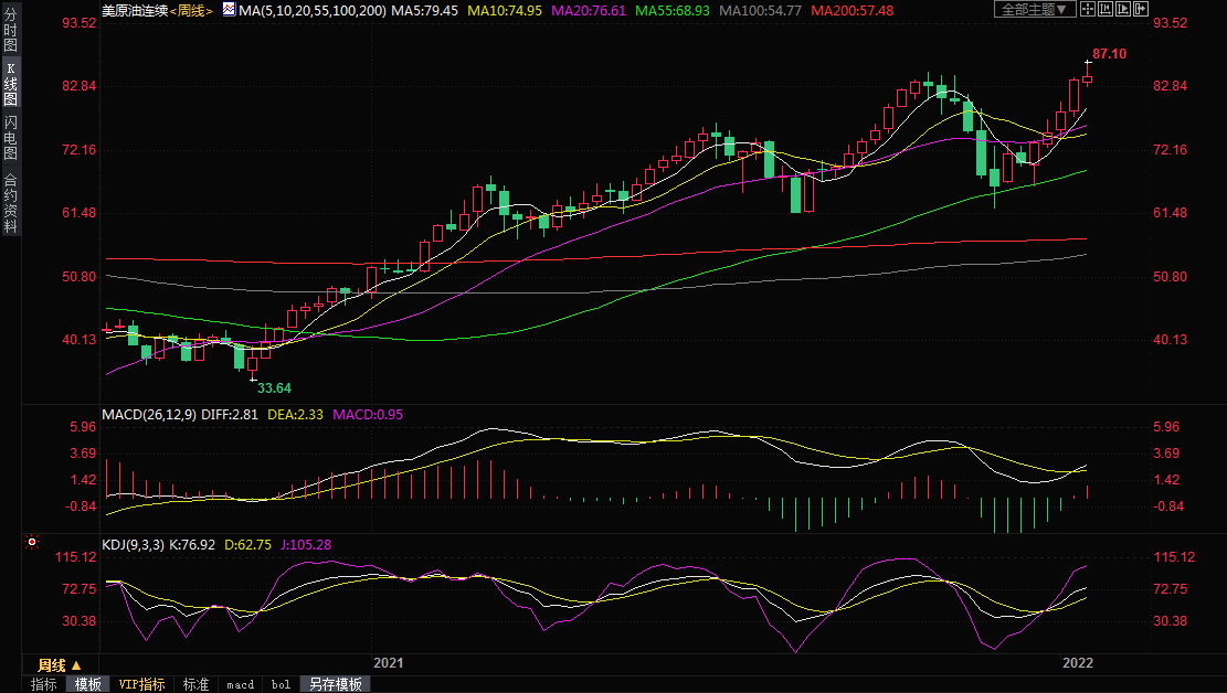 刚刚过去的一周,因为各种迹象依然显示需求强劲而供应紧张,国际油价震荡上涨,美布两油均创下2014年10月以来新高,周线录得五连阳,美原油本周收涨0.6%,收报84.83美元/桶,布伦特原油本周收涨1.65%,收报87.90美元/桶。