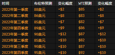 同时将2023年布伦特油价预期从85美元/桶上调至105美元/桶。