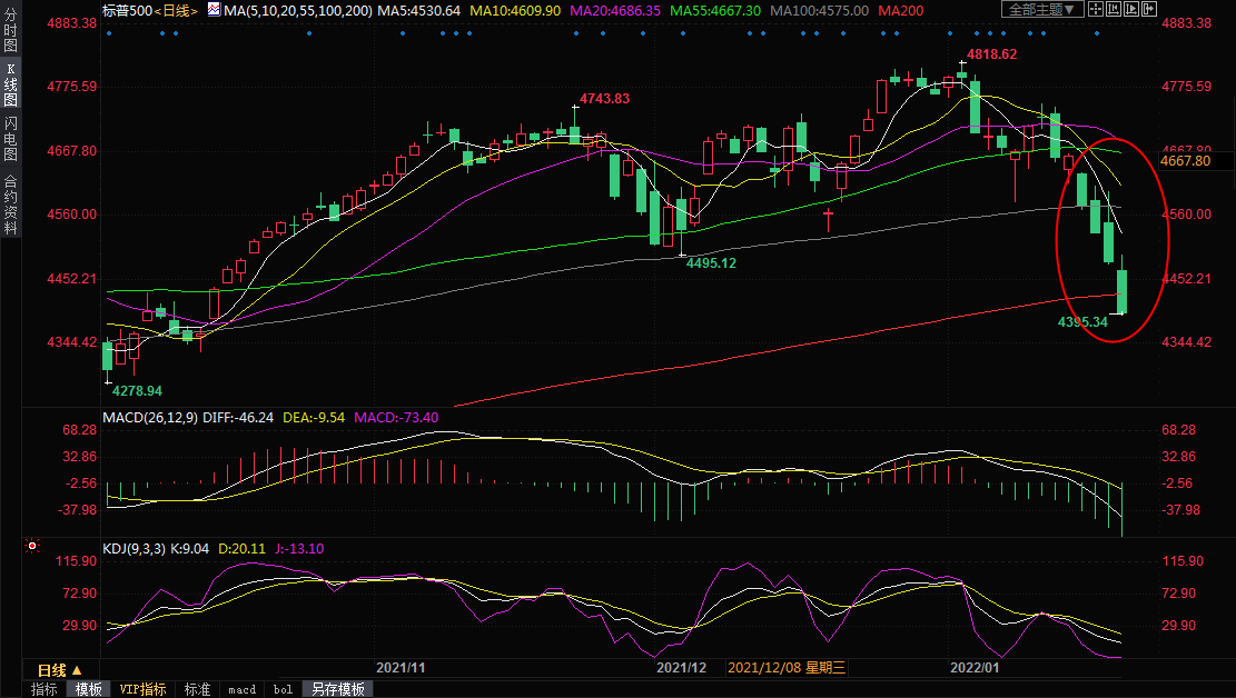 美国股市周五延续跌势,录得自新冠疫情爆发以来表现最糟糕的一周。标普500指数自2020年以来首次收于200日移动均线下方。