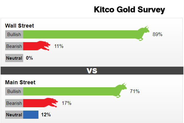 本周,18 位华尔街分析师参与了 Kitco News 的黄金调查。在参与者中,16 位分析师或 89% 认为下周金价会上涨。与此同时,两位分析师(或 11%)在短期内看空黄金。本周没有中立投票。