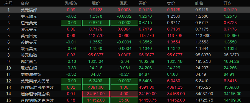 美元兑瑞郎下跌0.57%至0.9117;澳元兑美元跌0.62%至0.7181;纽元兑美元跌0.58%至0.6718。