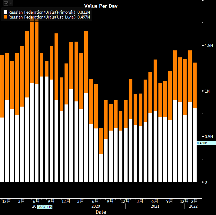 作为全球第二大石油出口国,下个月俄罗斯将每天从该国的波罗的海港口出口131万桶乌拉尔原油,为去年9月以来的最低水平。其中大部分最终运往欧洲西北部地区的炼油厂。不过目前还不清楚俄罗斯出口下滑对该国石油产量意味着什么,按照OPEC+的增产计划,俄罗斯本应提高石油产量。但该国国内的炼油厂似乎开足马力,可能会接纳原本用于出口的原油,俄罗斯今年看起来还可能通过德鲁日巴输油管直接向欧洲输送更多原油。